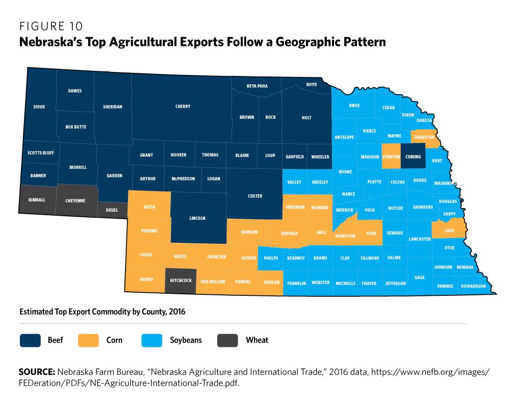 12 Nebraska Farm Bureau, “Nebraska Agriculture and International Trade,” 2016 data, https://www.nefb.org/images/FEDeration/PDFs/NE-Agriculture-International-Trade.pdf.